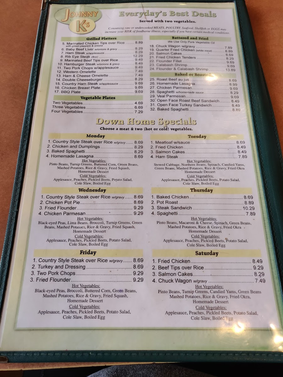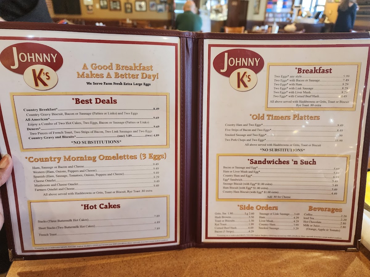 Johnny K's Restaurant offers a straightforward and comforting Southern-style menu that fits perfectly with its casual family-friendly atmosphere. The selection is centered around hearty breakfasts and homestyle meals that invite you to slow down and enjoy familiar, satisfying flavors any time of the day.