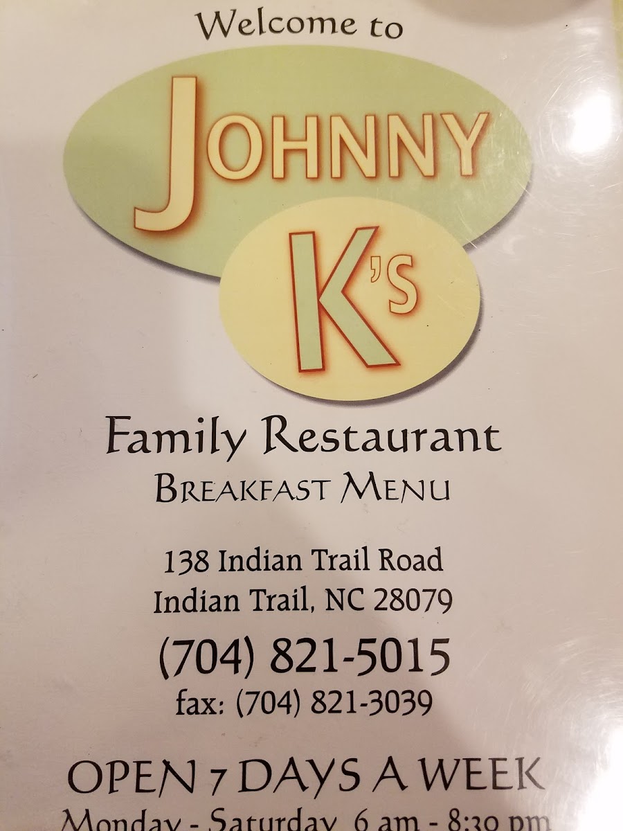 Johnny K's Restaurant Menu